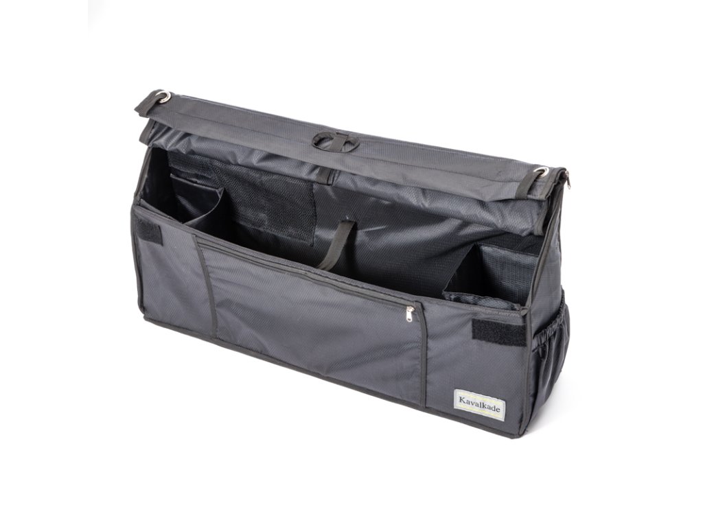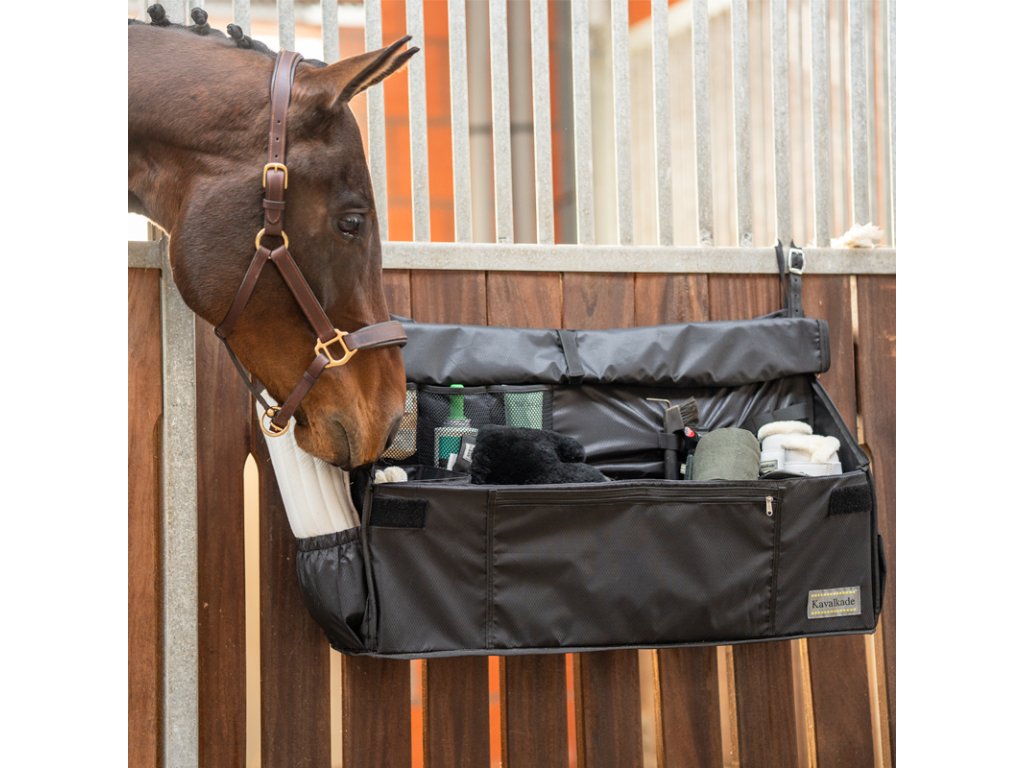 Táto taška je vhodná na uskladnenie výstroja, čistiacich pomôcok, kŕmnych doplnkov alebo drobných jazdeckých potrieb . Vďaka svojmu prepracovanému dizajnu ladí s ďalšími doplnkami z kolekcie Kavalkade Competition .