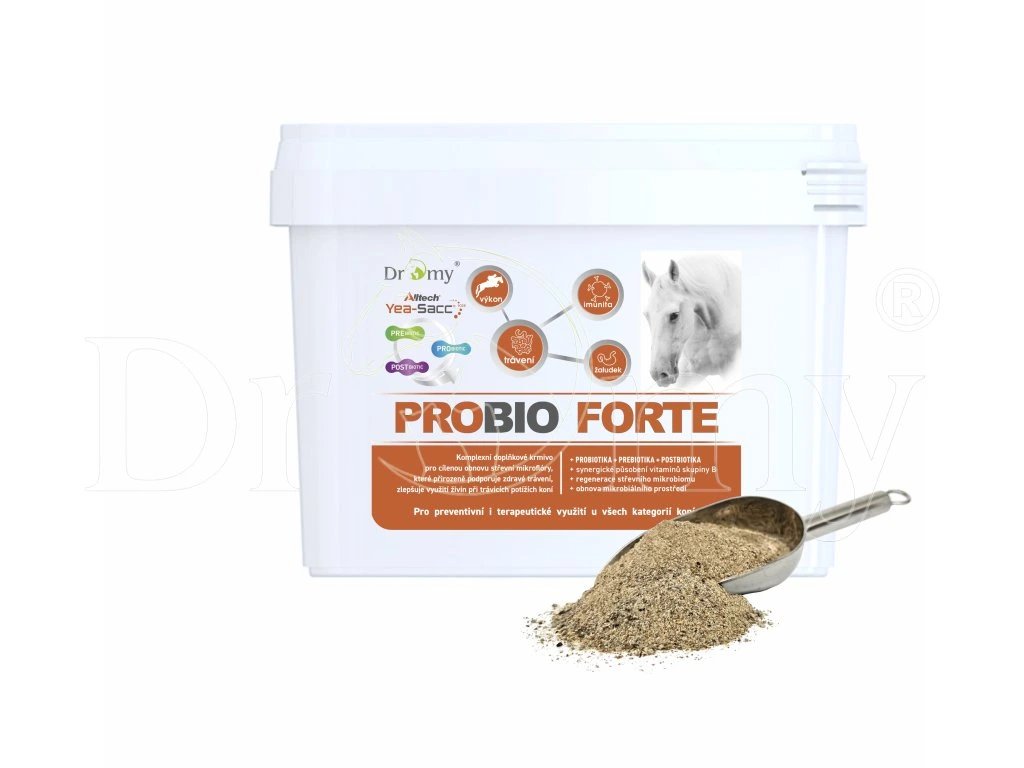 ProBio FORTE je dlhodobo overené doplnkové krmivo s najvyššou koncentráciou probiotických mikroorganizmov Alltech YEA SACC® 1026. Obsahuje ďalšie aktívne látky na podporu zdravia tráviaceho traktu s PRO • PRE • POST biotickými a mukoprotektívnymi vlastnosťami.