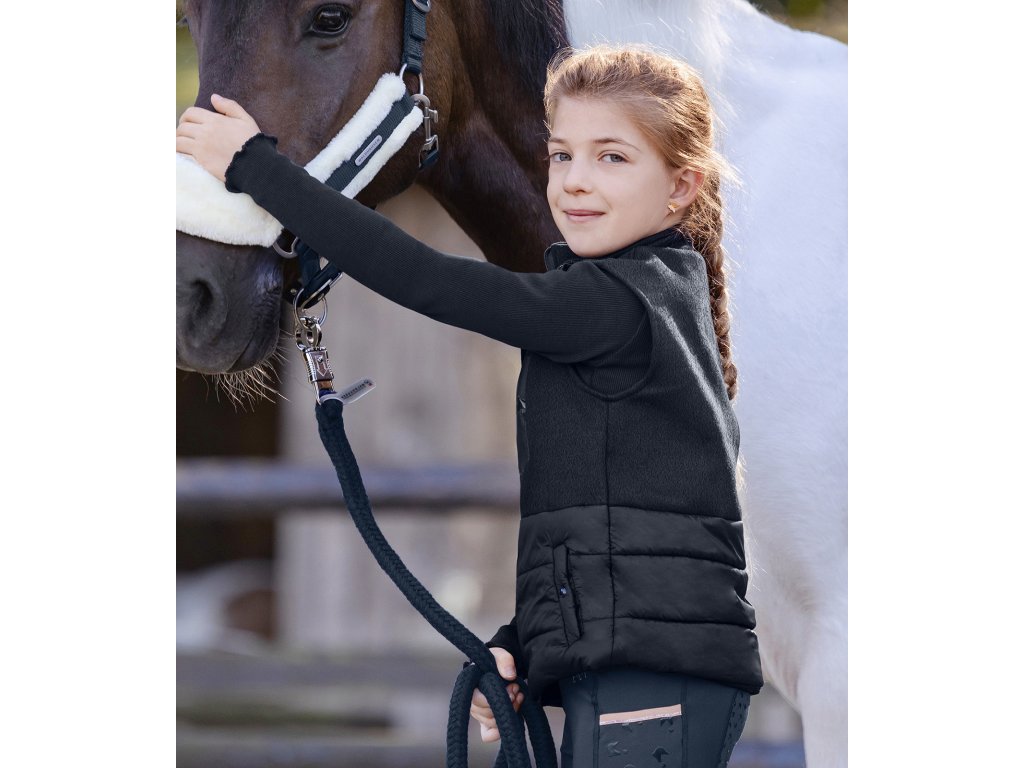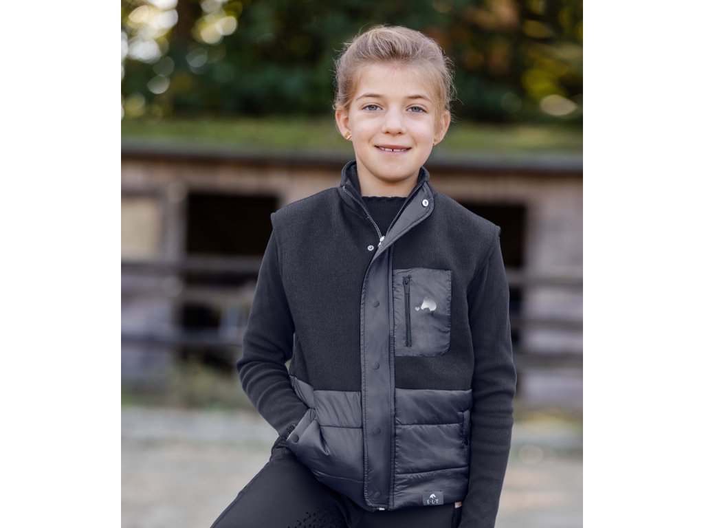 Vesta, v ktorej sú ranné stajne aj popoludňajší tréning čistá radosť. E·L·T Lucky Milu v odtieni Deep Blue kombinuje teplý, hebký fleece na hornej časti a ľahko zateplený prešívaný diel na spodku. Vetru a vode odolná úprava drží pohodlie aj keď sa počasie hrá. Detaily potešia – zip s légiou na patentky, bočné vrecká na cvoček a náprsné vrecko na zips so silikónovým logom. Na golieri výšivka „Dream Crew“ a na leme tkaný štítok E·L·T. Pocit? Mäkké teplo bez zbytočného objemu – presne pre deti, ktoré chcú behať, jazdiť a smiať sa.