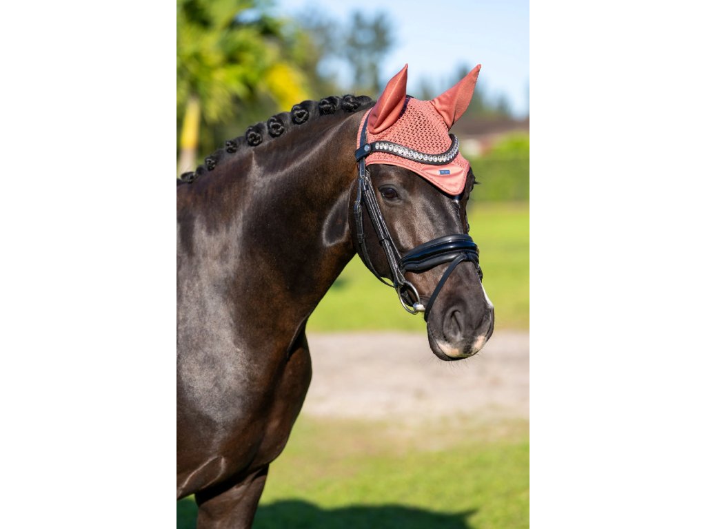 Okrem dizajnu však ušiak prináša aj funkčnosť, ktorú ocení každý jazdec aj kôň. Poskytuje ochranu proti hmyzu a zároveň pomáha so znížením hluku, čo je ideálne pre citlivejšie kone alebo pre jazdenie v rušnejšom prostredí. Uši sú doplnené o elastickú látku, vďaka ktorej ušiak sedí pohodlne, netlačí a dobre sa prispôsobí.