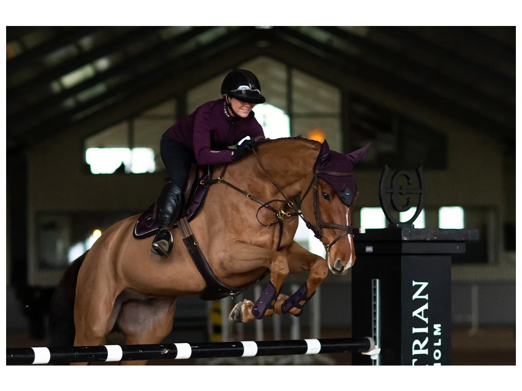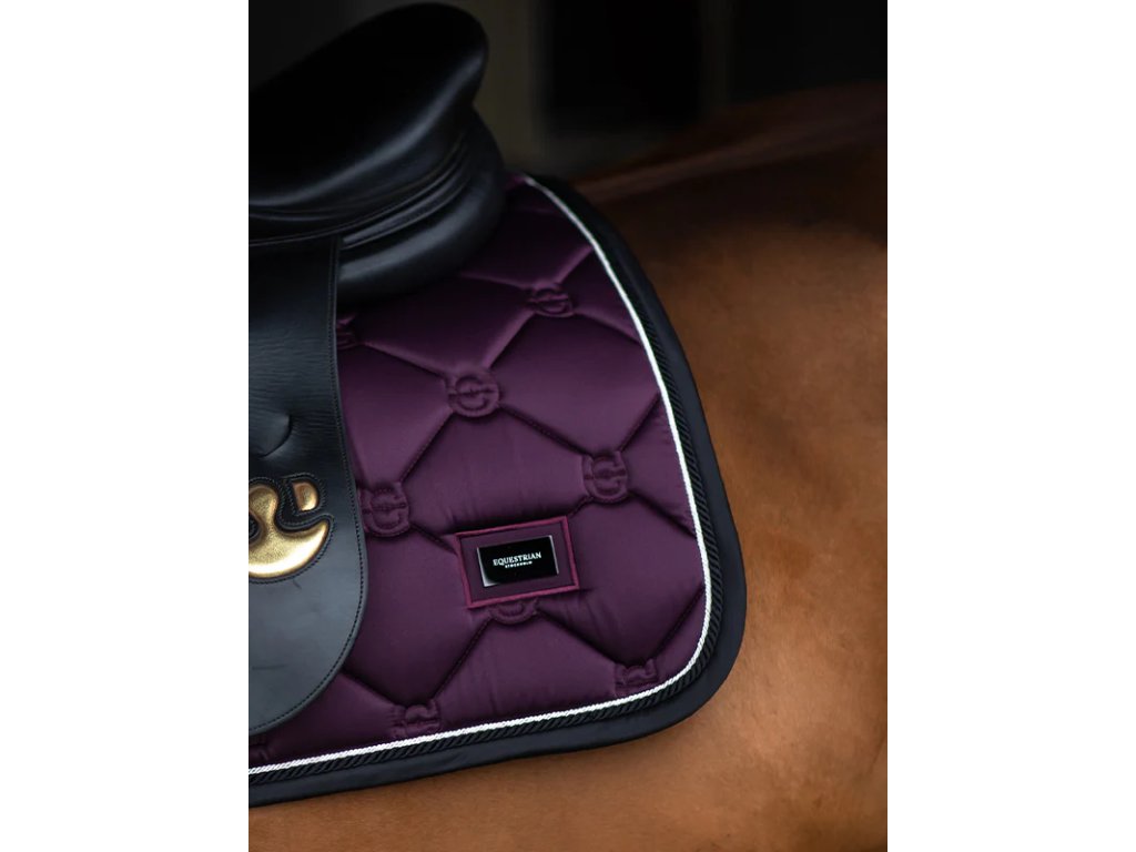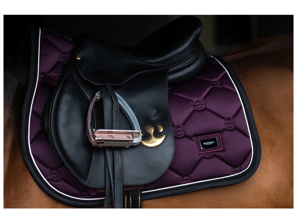 Equestrian Stockholm Jump Saddle Pad Black Raven je exkluzívna skoková podsedlová podložka v hlbokej tmavo fialovej farbe, doplnenej o čierne a biele detaily. Pôsobí elegantne, moderne a výrazne – ideálna voľba pre jazdcov, ktorí chcú vyniknúť štýlom bez kompromisov v komforte koňa.