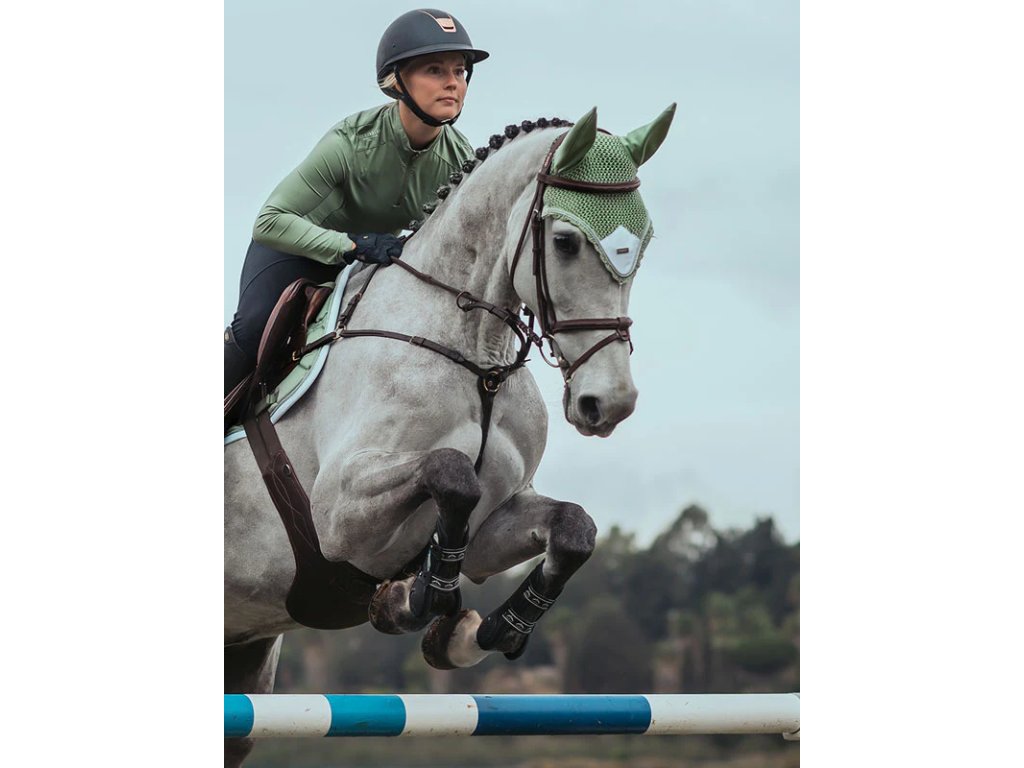 Doplňte svoj jazdecký outfit o štýlovú ušaňu pre koňa z kolekcie Pistachio od Equestrian Stockholm. Táto ušaňa v jemnom pistáciovom odtieni je navrhnutá pre funkciu aj eleganciu. Saténové uši tlmia hluk a zlepšujú sústredenie koňa, zatiaľ čo háčkovaná predná časť chráni pred hmyzom. Biele detaily a decentné lesklé lemovanie dodávajú tomuto doplnku výnimočný vzhľad – ideálny na súťaž aj každodenné jazdenie.