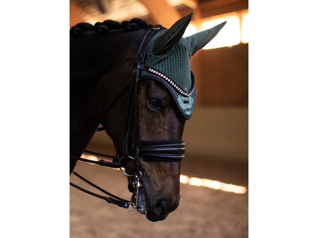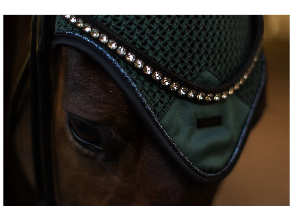 Ušaňa pre koňa z kolekcie Equestrian Stockholm Sycamore Green ponúka štýlový vzhľad a maximálne pohodlie. Saténové uši efektívne tlmia rušivé zvuky, zatiaľ čo háčkovaná predná časť chráni pred hmyzom. Tmavozelený odtieň Sycamore Green v kombinácii s čiernym lemovaním a jemným trblietavým detailom vytvára elegantný dojem, ktorý perfektne ladí s podsedlovou podložkou z rovnakej kolekcie.