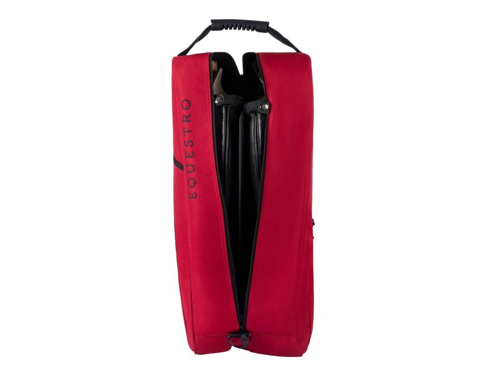 Equestro Cordura taška na čižmy a prilbu – bordová je štýlový a praktický doplnok pre každého jazdca, ktorý chce mať svoju výstroj bezpečne uloženú a vždy pripravenú na cestu do stajne, na tréning aj na preteky. Vďaka spojeniu odolného materiálu Cordura, premysleného spracovania a elegantného vzhľadu pôsobí táto taška na jazdecké čižmy a prilbu moderne, čisto a profesionálne.