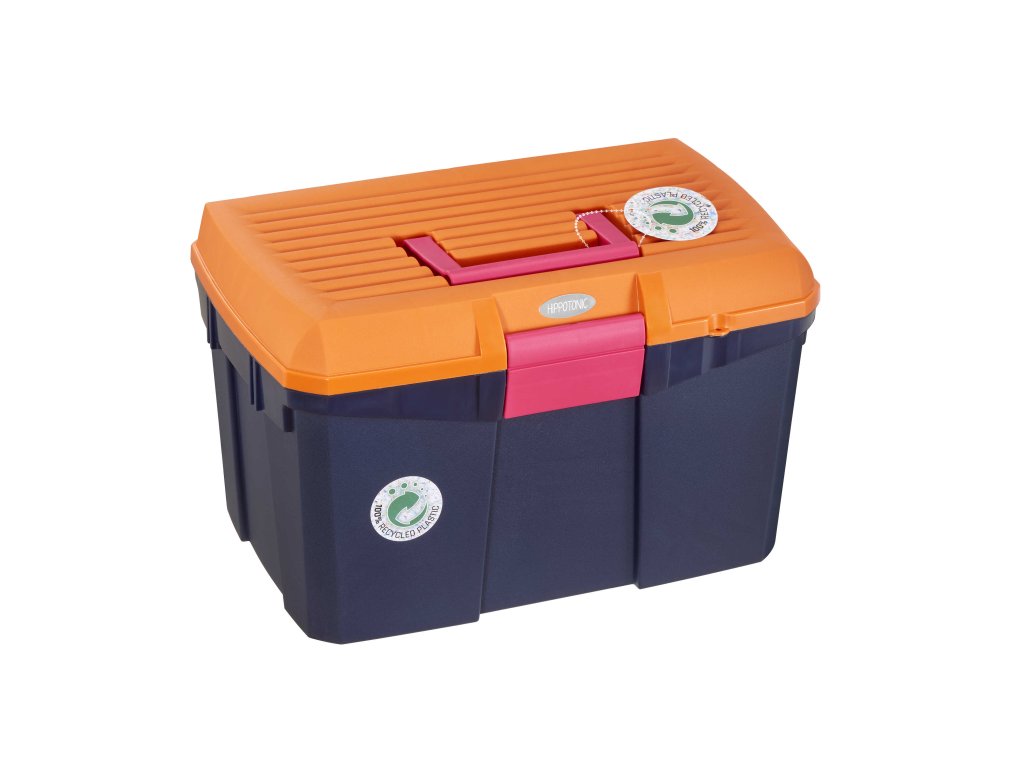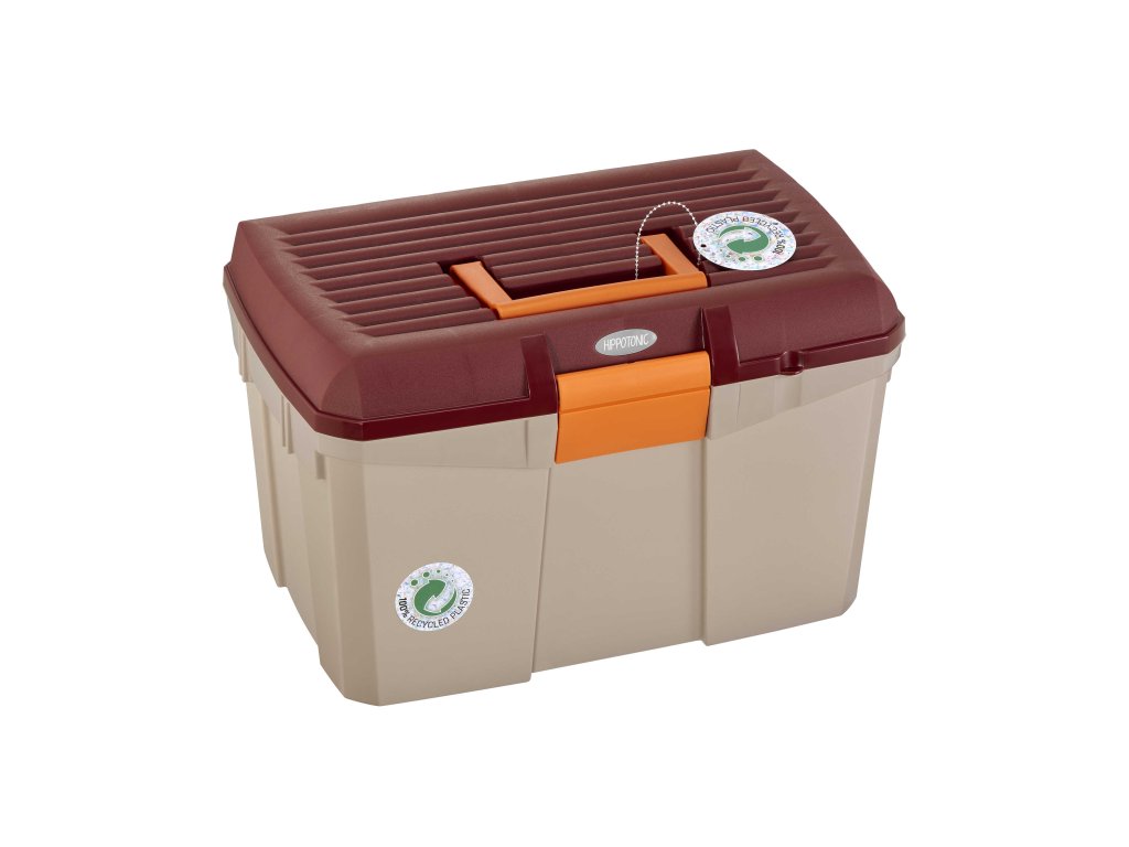 HIPPOTONIC Tack Box v limitovanej edícii je ideálnym riešením na prehľadné uloženie jazdeckých potrieb. Je vyrobený z odolného polypropylénu, má vystužené veko s nosnosťou až 100 kg , takže môže slúžiť aj ako stolička alebo stojan pri úprave hrivy.