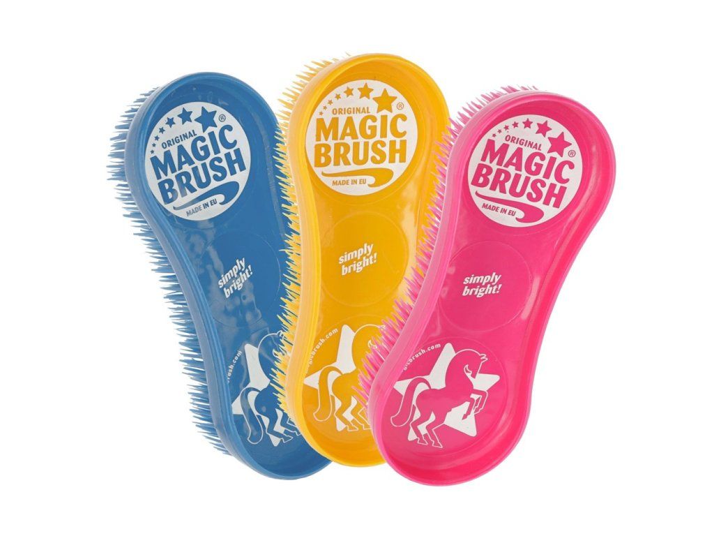 Magic Brush kefa na čistenie koňa – rôzne farby je obľúbená čistiaca pomôcka pre každodennú starostlivosť o koňa. Vďaka praktickému tvaru sa ľahko drží v ruke a umožňuje rýchle, jednoduché a efektívne čistenie srsti.