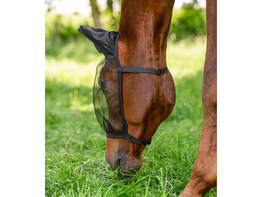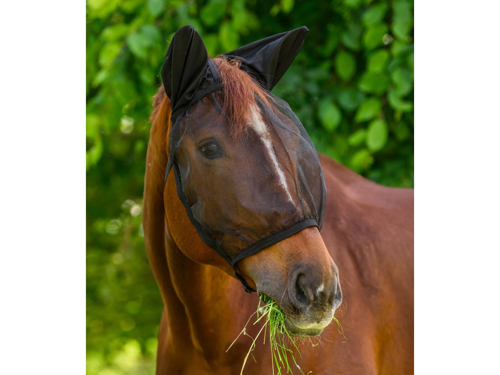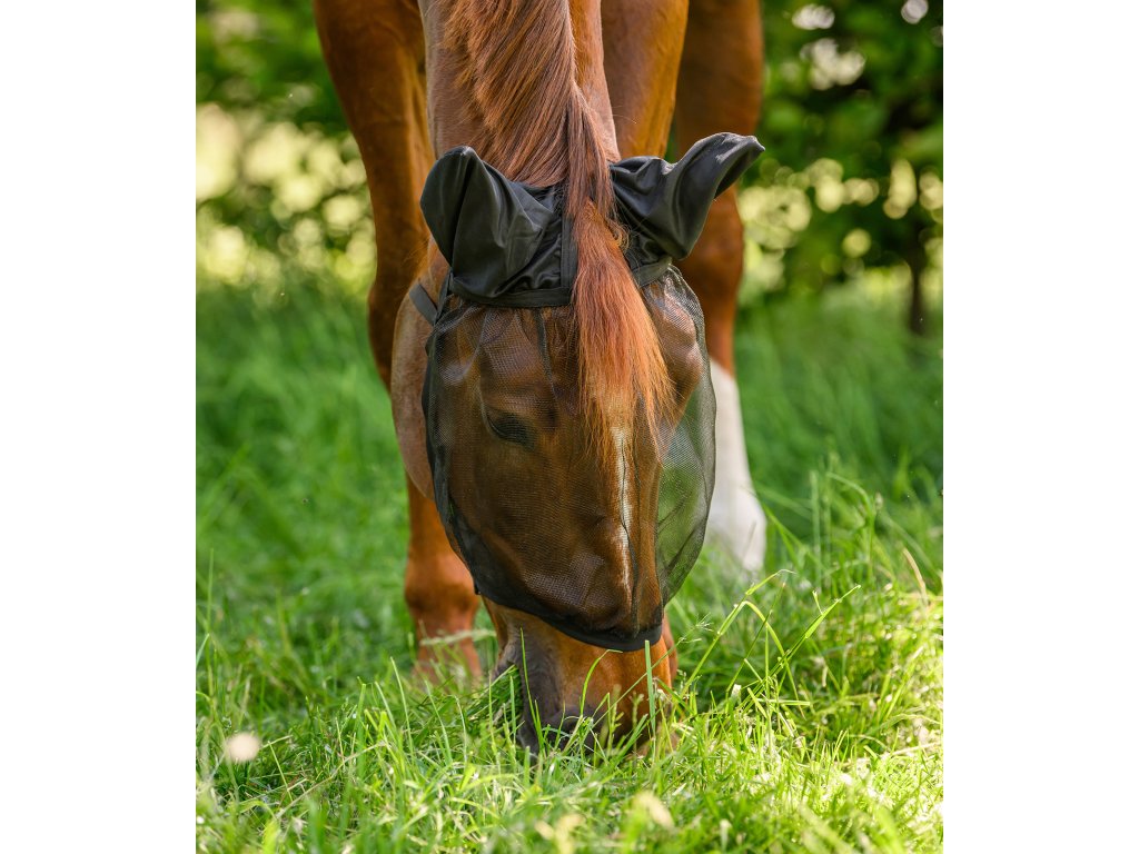 Ľahká maska proti muchám s ochranou uší z jemnej pevnej sieťoviny. Chráni oči a uši koňa pred hmyzom a pohodlne sa prispôsobí hlave.