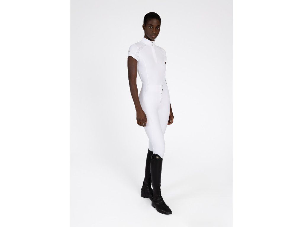 Maximilian Equestrian Aveen Short Sleeve Show Shirt (White) prináša obľúbený Aveen dizajn do súťažnej verzie – ženský, čistý a zároveň športovo moderný. Je to presne ten typ košele, ktorá vyzerá na pretekoch luxusne a upravene, no v praxi ťa nenechá „variť sa“ v teple. Kľúčom sú charakteristické perforované panely, ktoré výrazne zvyšujú priedušnosť a komfort počas nosenia.