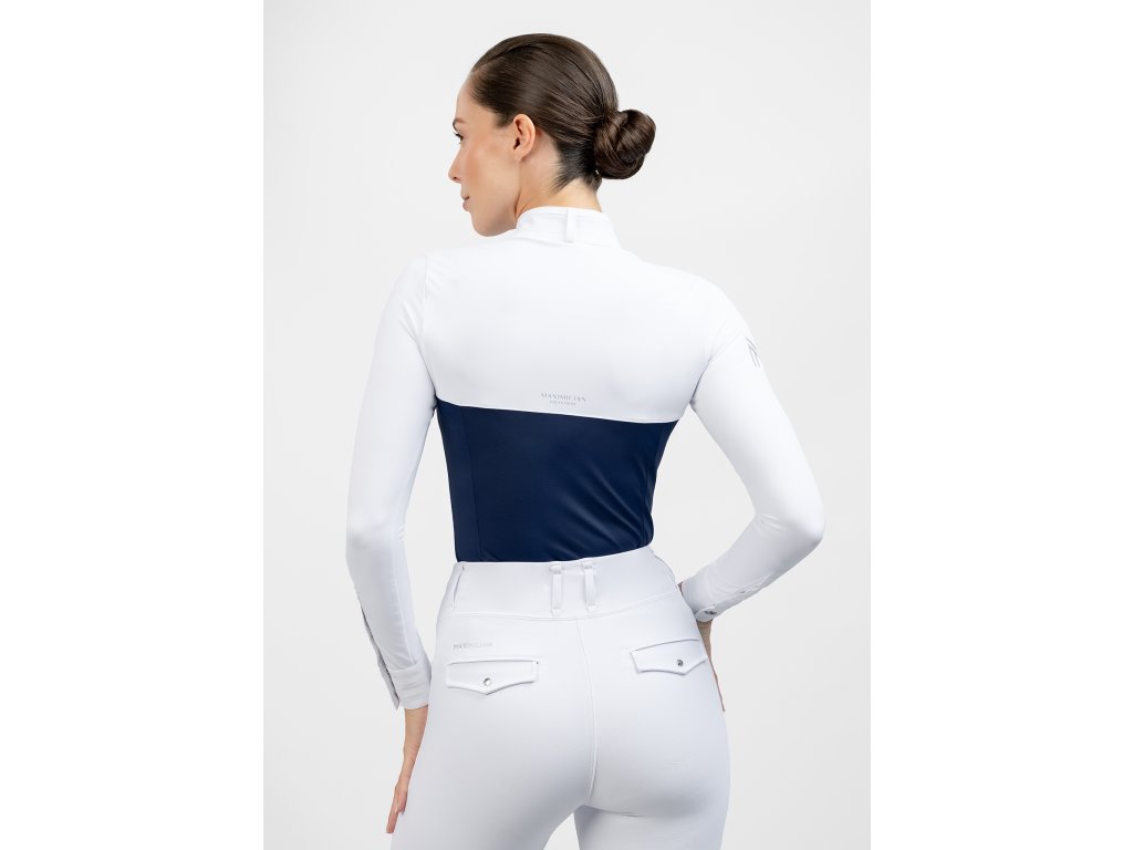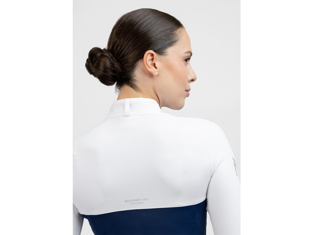 Era Long Sleeve Show Shirt – Navy od Maximilian Equestrian je nadčasový a elegantný kúsok určený pre jazdcov, ktorí vyžadujú profesionálny vzhľad a maximálny komfort počas súťaží. Tmavomodrý odtieň Navy pôsobí klasicky, reprezentatívne a perfektne ladí s pretekárskym sakom.