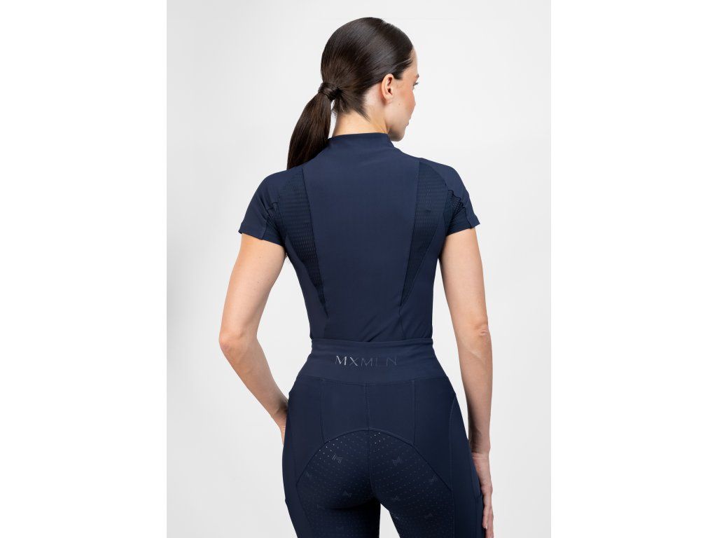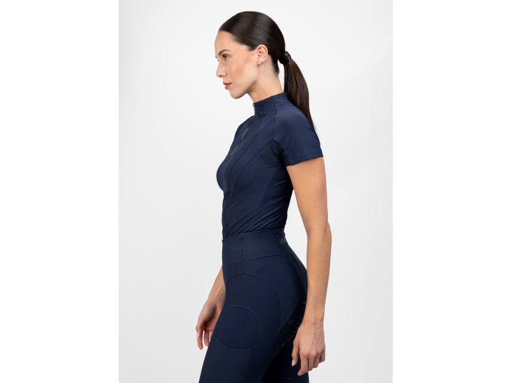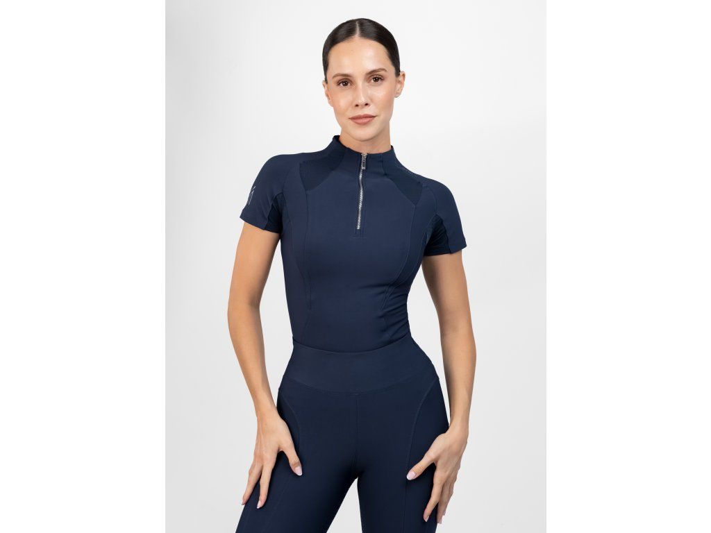 Maximilian Equestrian Frame Short Sleeve Base Layer (Navy) prináša novú generáciu base layerov – spája funkčnosť, výkon a moderný štýl do jedného kúsku, ktorý pokrýva všetko, čo dnes jazdkyňa potrebuje. Je navrhnutý z ľahkých, maximálne priedušných materiálov s 360° stretch a quick-dry vlastnosťami, takže sa v ňom cítiš komfortne v sedle aj mimo neho. A presne to je jeho sila: nie je len na jazdenie – je skvelý aj na beh, do fitka či akúkoľvek fitness aktivitu.