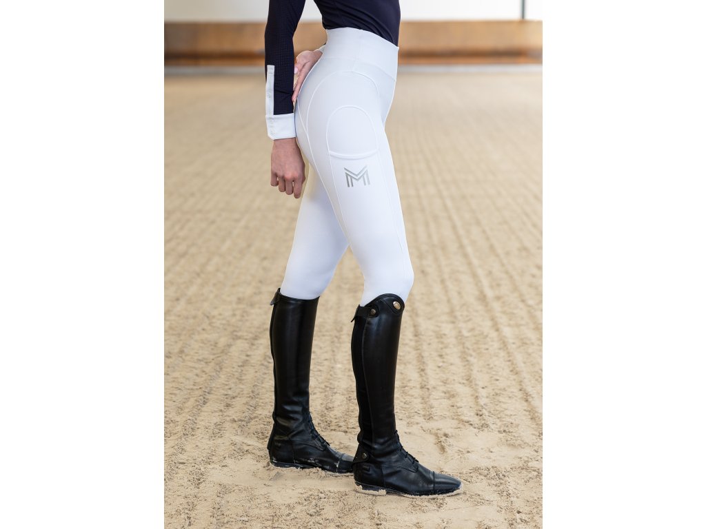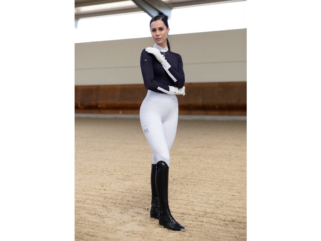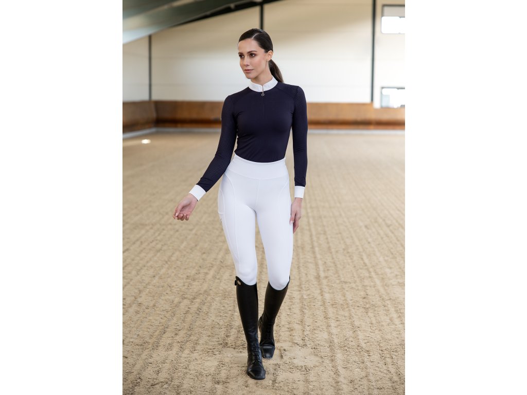 Legíny sú vhodné na celoročné nosenie a boli vyvinuté tak, aby pôsobili ako druhá koža – bez rušivých švov, bez tlaku v sedle a s úplnou voľnosťou pohybu. Biela farba pôsobí mimoriadne elegantne a je ideálnou voľbou najmä na preteky a oficiálne vystúpenia.