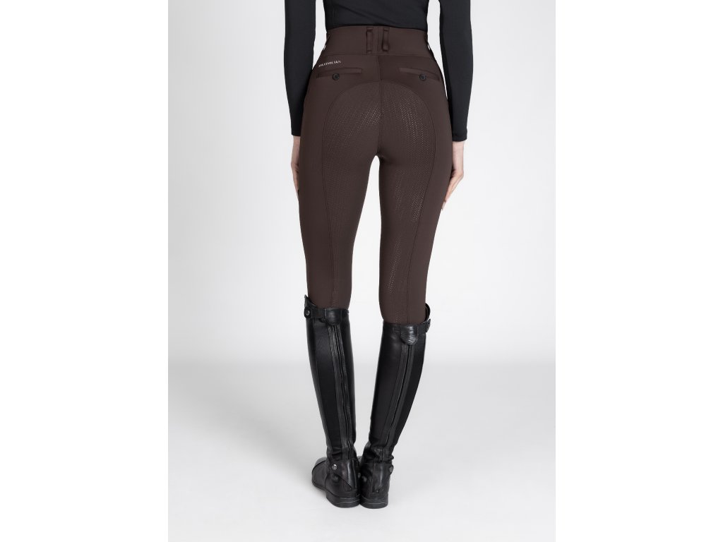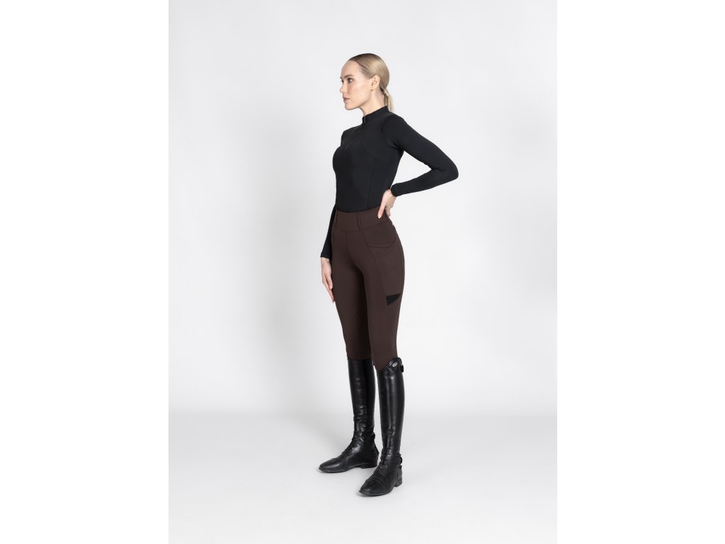 Tech Riding Leggings – Chocolate sú ideálnou voľbou pre jazdcov, ktorí chcú technicky vyspelé legíny s elegantným, teplým farebným tónom, ktorý sa ľahko kombinuje s akýmkoľvek outfitom.