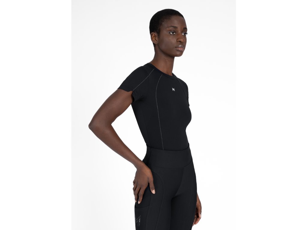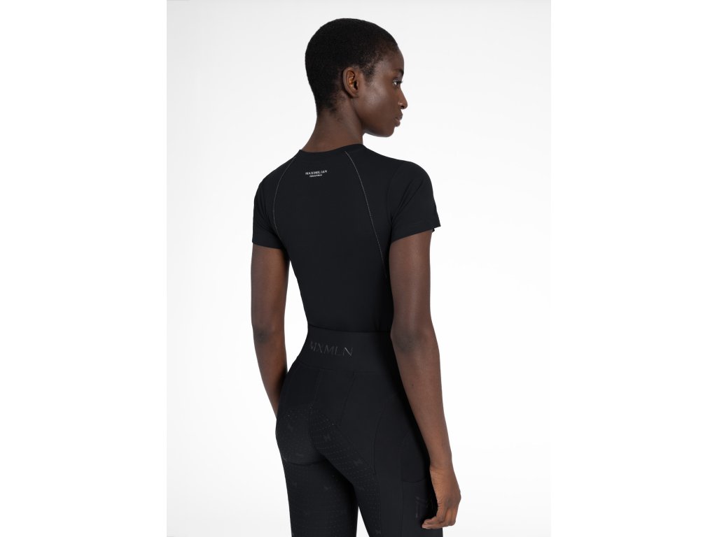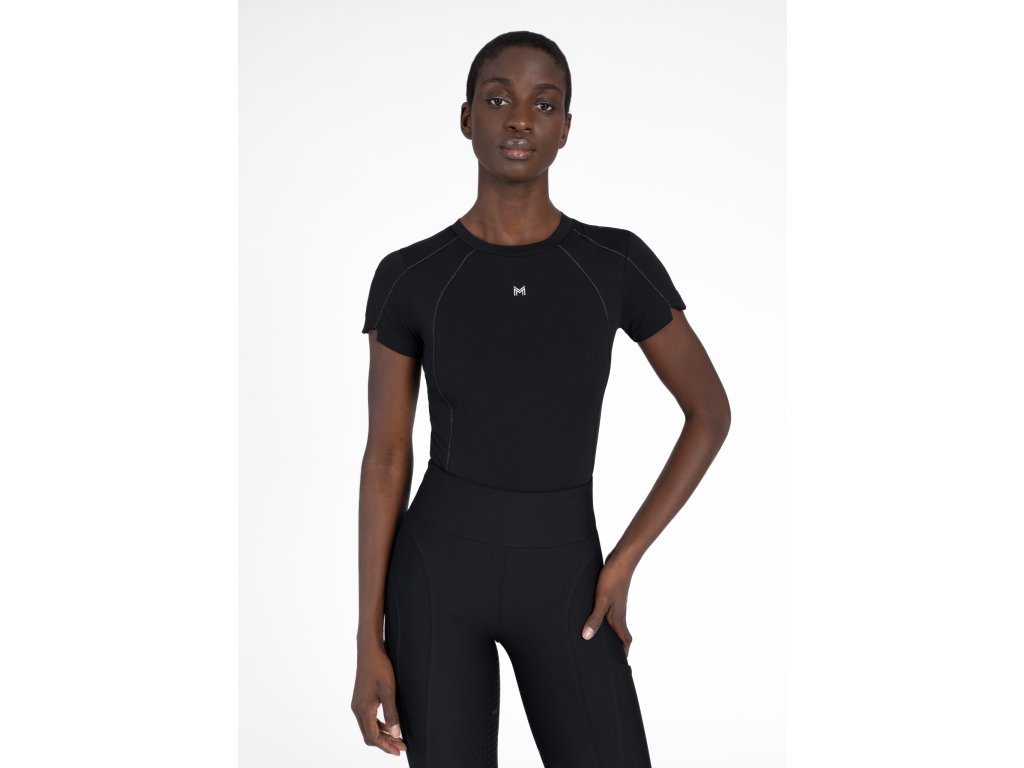 Kova Technical T-Shirt – Black od Maximilian Equestrian je presne ten kúsok, ktorý v lete zachráni komfort – vyzerá minimalisticky, ale na tele pôsobí výnimočne. Revolučný technický materiál je jemný ako bavlna dotyk, takže tričko je príjemné ako bavlna, no funguje ako výkonová vrstva: dýcha, schne a zvláda aj rýchlojší tréning.