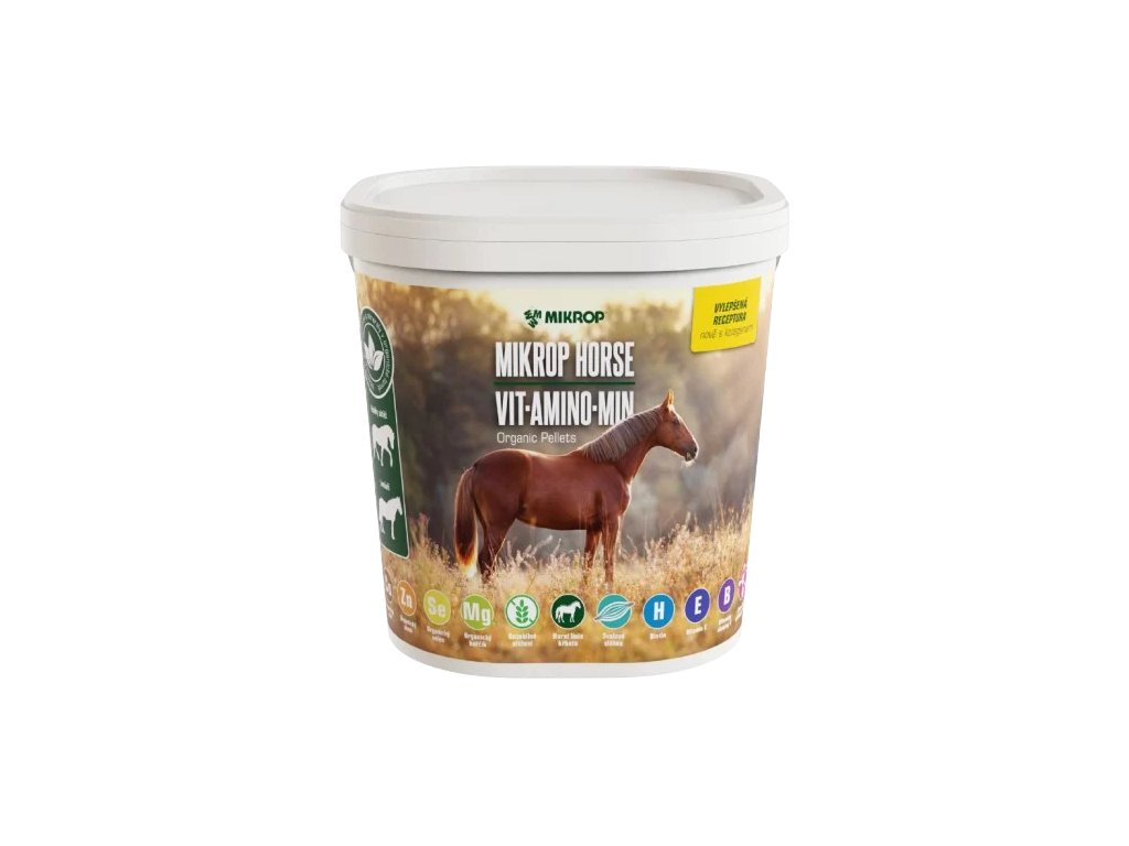 MIKROP® HORSE VIT.AMINO.MIN ORGANIC PELLETS je prémiový granulovaný vitamíno-minerálny prípravok s vysokým obsahom organicky viazaných látok, vitamínov, mikroprvkov a esenciálnych aminokyselín.