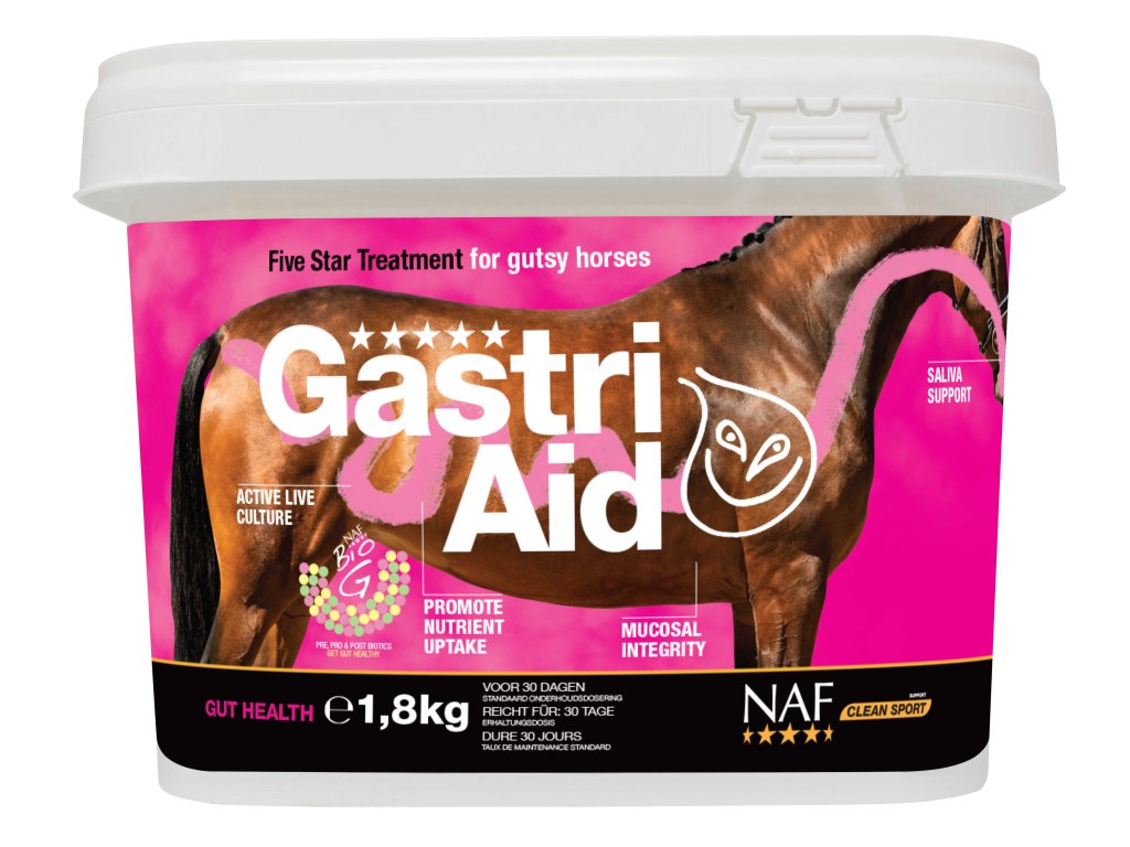 NAF GastriAid je špeciálne vyvinutý na podporu črevného komfortu, efektívneho trávenia a celkovej pohody koní. Kombinuje vyváženú zmes prírodných látok, ktoré upokojujú tráviaci trakt, zlepšujú vstrebávanie živín a podporujú zdravie črevnej steny.