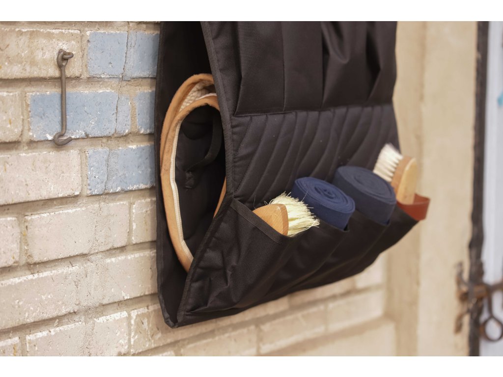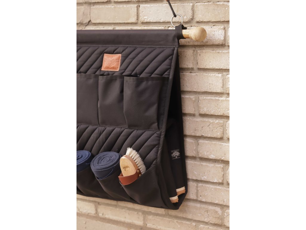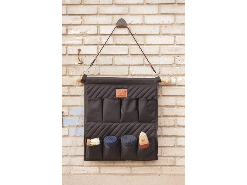 Organizér do stajne PADDOCK v čiernej farbe je ideálnym riešením na prehľadné uloženie všetkých jazdeckých potrieb. Kombinuje praktickosť, odolnosť a elegantný dizajn s detailmi z kože a diagonálnym prešívaním.