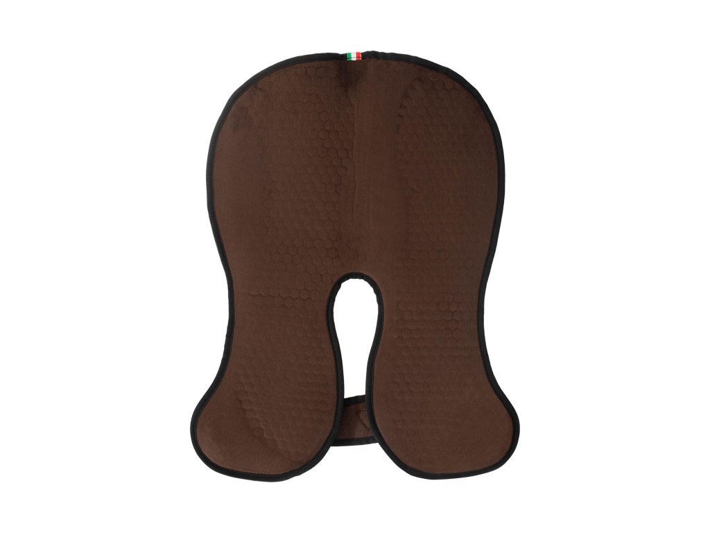 Acavallo withers free shape slim pad je prémiový kompenzátor, ktorý rieši presne to, čo pri sedlaní nechceš: nepríjemné stláčanie v oblasti kohútika a „tvrdý“ tlak pod sedlom. Vďaka špeciálnemu tvaru so zníženou hrúbkou v strede sa podložka lepšie prispôsobí chrbtu koňa, podporí nepretržitú cirkuláciu vzduchu a pomáha udržať komfort aj pri dlhšom tréningu.