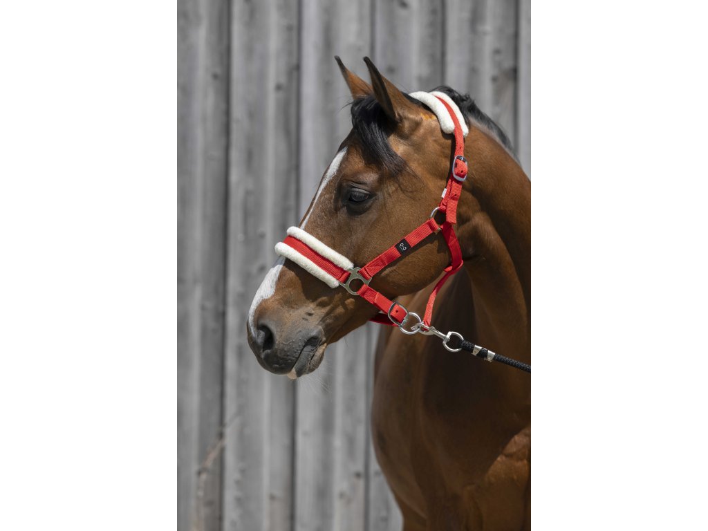 Štýlová a pohodlná ohlávka RIDING WORLD v červenej farbe je ideálna na každodenné používanie. Je vyrobený z odolného polypropylénu a vďaka syntetickej ovčej koži na nánosníku a hlavici poskytuje koňovi maximálne pohodlie bez únavy.