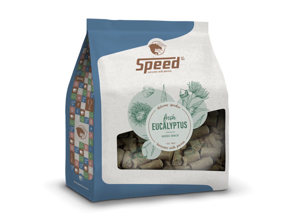 Speed Eucalyptus je špeciálna maškrta pre kone, ktorá spája praktickosť, dlhú trvanlivosť a osviežujúcu eukalyptovú arómu. Ide o výživné doplnkové krmivo vyrobené z kvalitných surovín, ktoré poteší každého koňa – nielen po práci, ale aj ako súčasť každodenného rituálu.