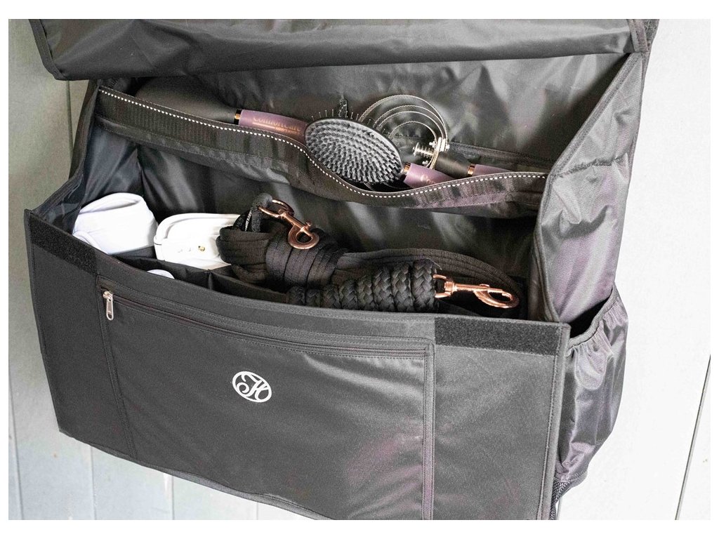 Udržujte si poriadok v stajni alebo na pretekoch s týmto praktickým organizérom. Vďaka rôznym priehradkám ponúka priestor na uloženie výstroja, dokumentov, rukavíc či čistiacich pomôcok. Možno ho jednoducho zavesiť na dvere boxu, skrinky alebo do prívesu.