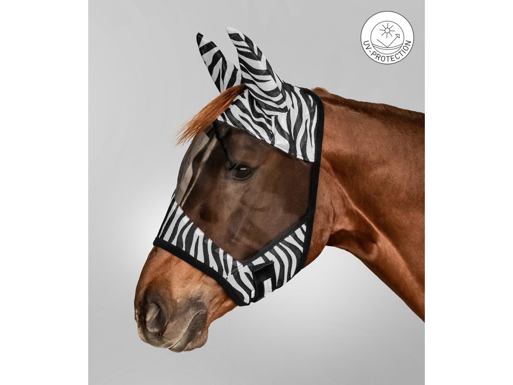 Waldhausen Zebra maska proti muchám je prémiová maska proti hmyzu pre koňa, vyrobená z jemnej sieťoviny s vysokým komfortom nosenia. Jej čierno-biely „zebra“ efekt pomáha odpudzovať hmyz a chráni koňa účinnejšie než bežné masky.